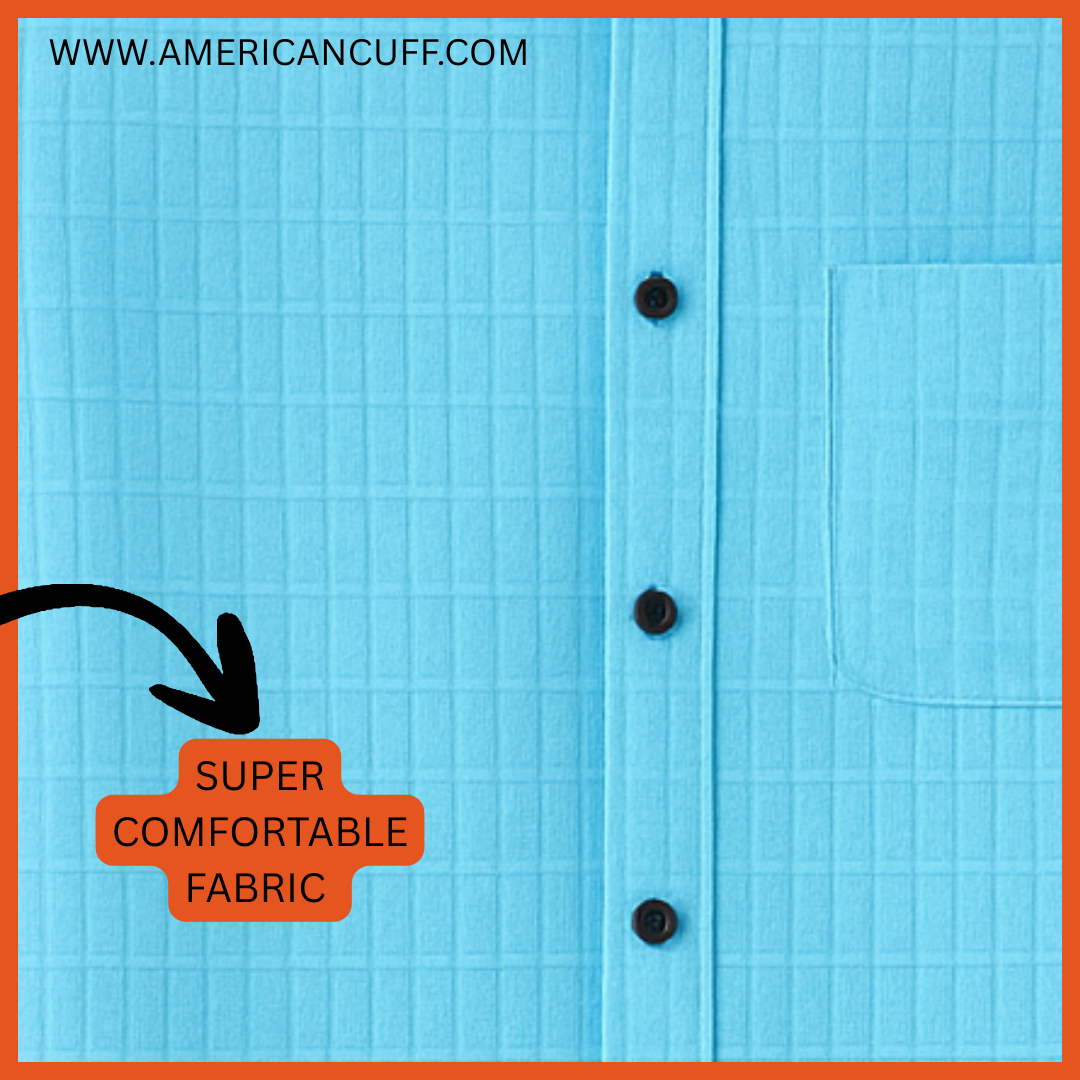 Premium SKY BLUE Checked Half Sleeve Shirt – Popcorn Fabric, Super Comfortable Casual Wear | American Cuff